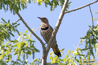 A rare sub-species was found today, the yellow-shafted variation at Oso Reservoir near the 241 toll road and Los Alisos Blvd. The yellow-shafted are for the most part the eastern US variants whereas here in Southern California, we have the red-shafted variants.